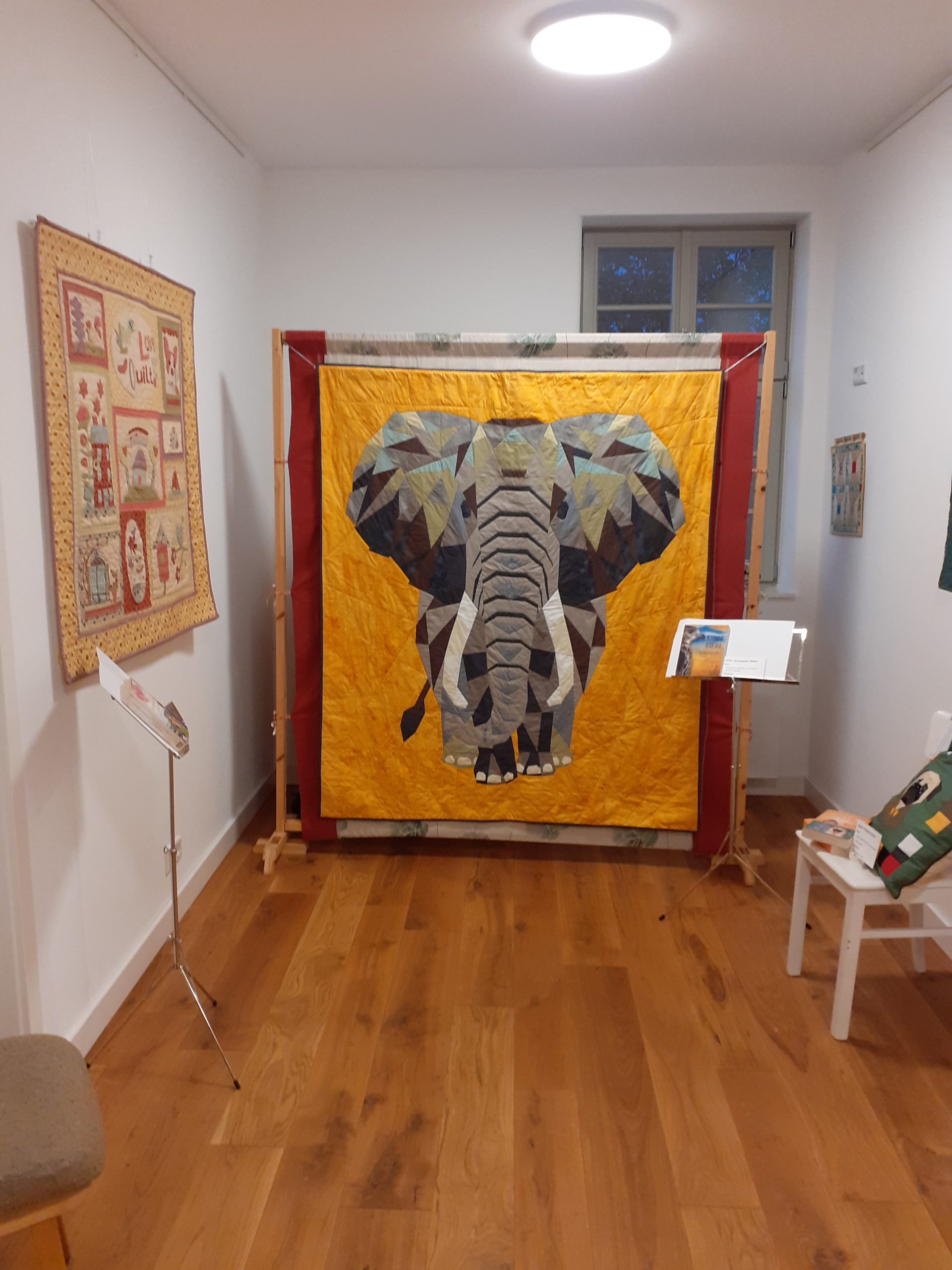 Das Foto zeigt eine Quilt-Ausstellung im ersten Obergeschoss des Richterhauses mit äußerst beeindruckenden Exponaten.